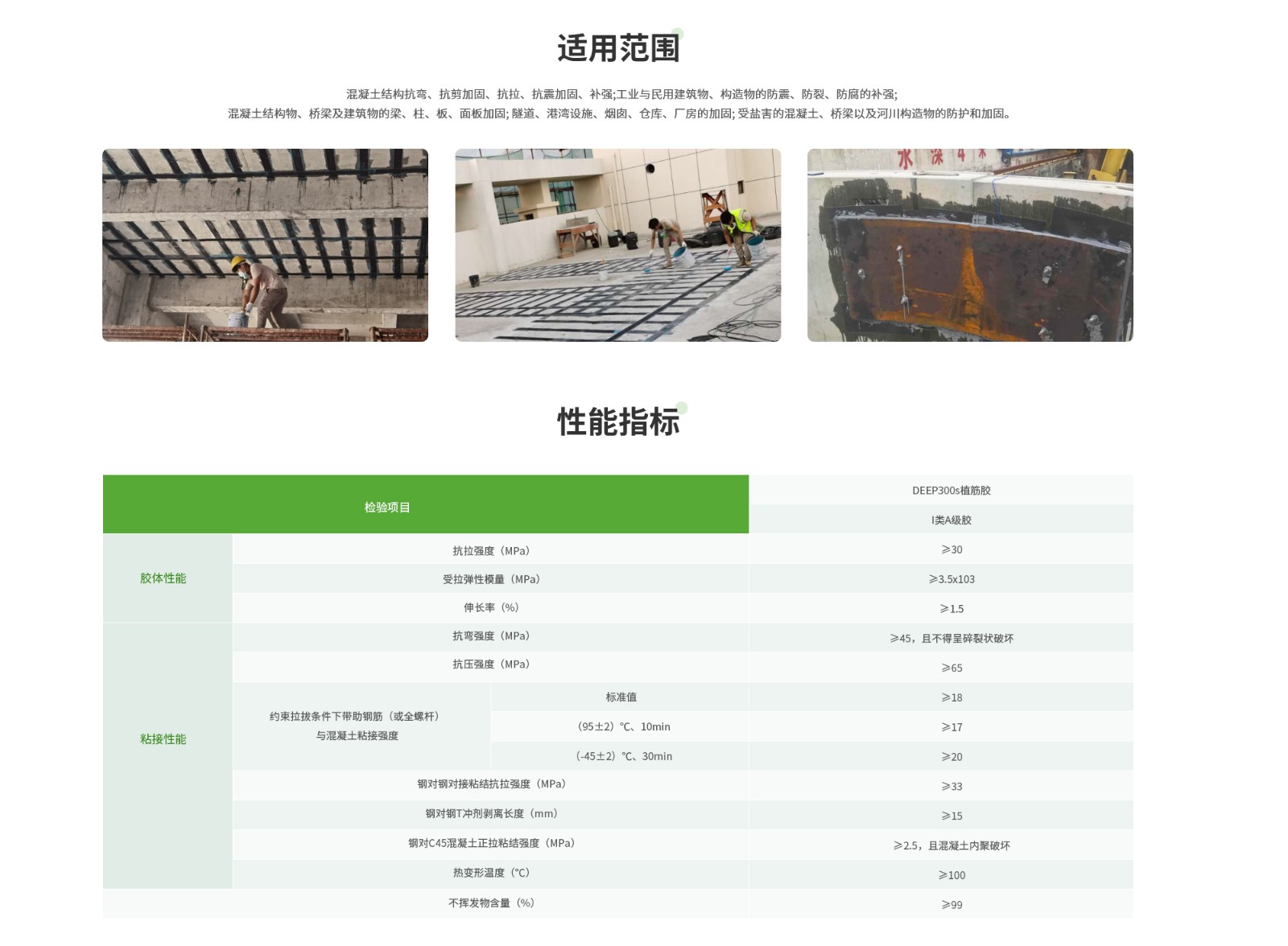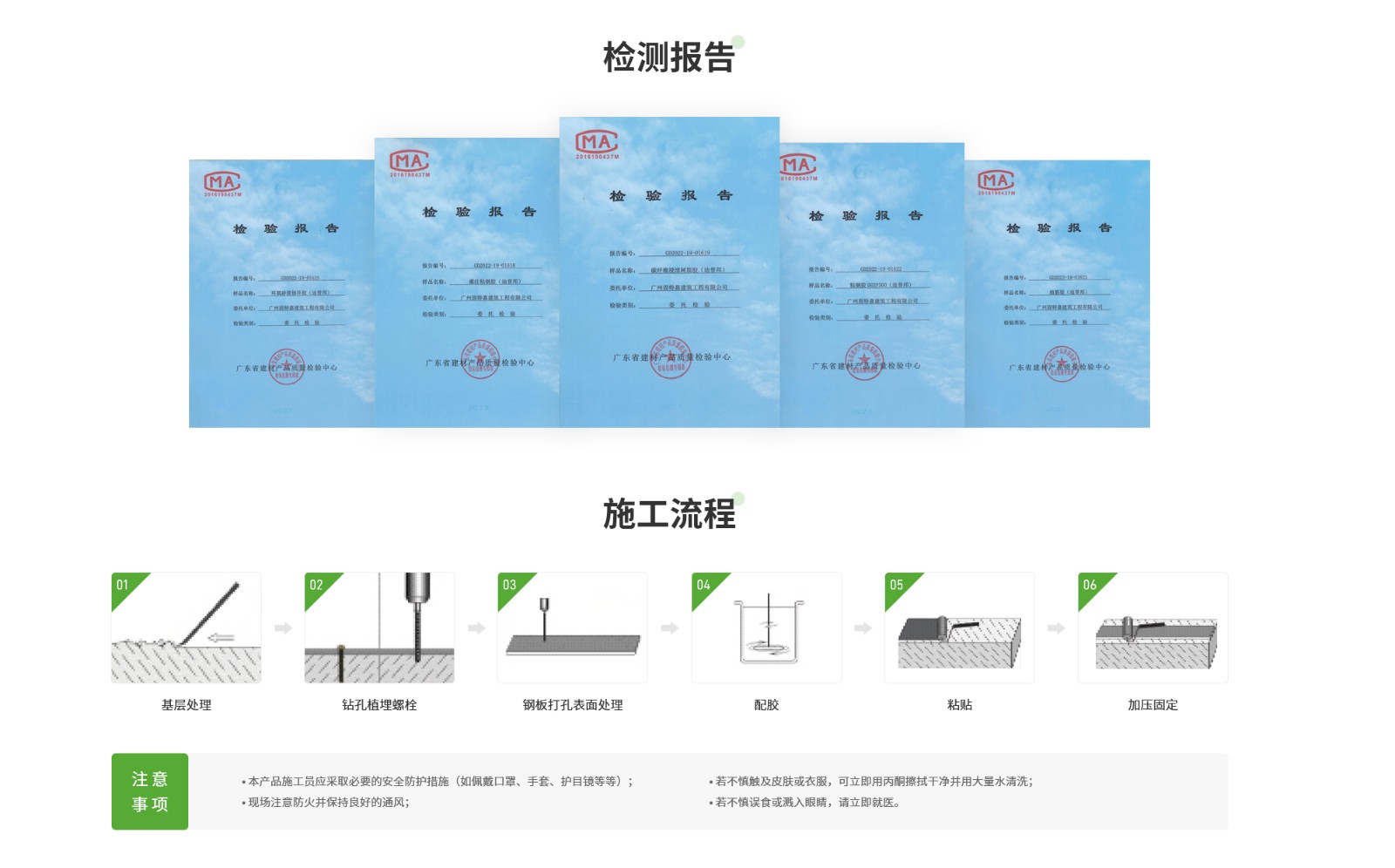 環(huán)氧類雙組份產(chǎn)品,具有粘接力強、常溫固化。在鋼板、混凝土的自粘和互粘中有優(yōu)異的耐老化、抗沖擊性能,剪切度高,適用于多種建筑加固抗震。